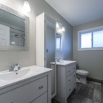 - Apartment is 1232 square feet and has master bedroom with 2 piece ensuite, 3 additional bedrooms, 1 full bathroom with 2 separate vanities/sinks plus extra cupboard storage, and common spaces shared by all.