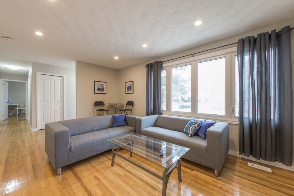 • Apartment is 1230 square feet and has 4 bedrooms, 2 full bathrooms with double sinks and common spaces shared by all.