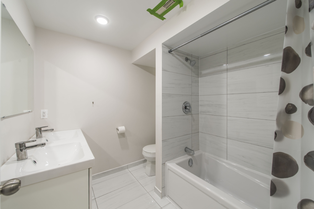 - Apartment is 1160 square feet and has 4 bedrooms, 1 full bathroom with double sinks plus separate 2 piece bathroom, and common spaces shared by all.